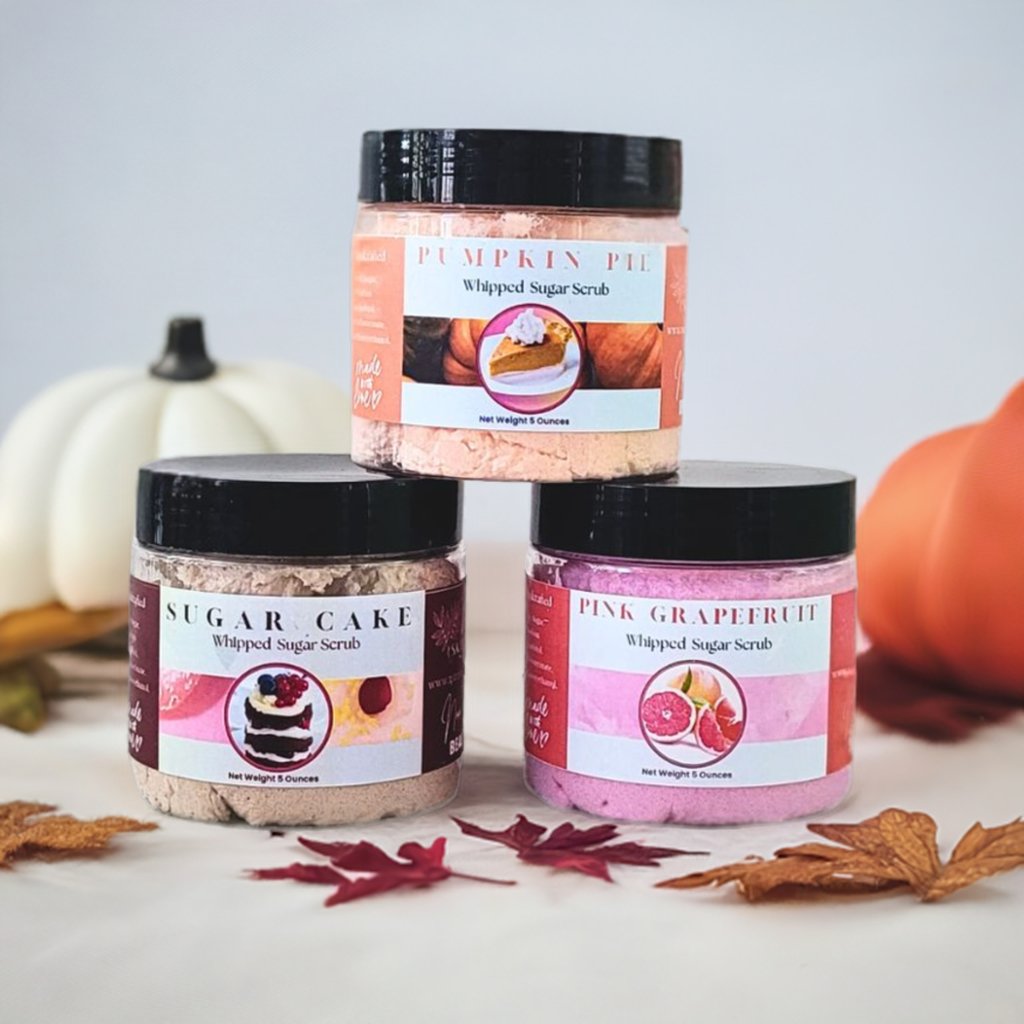 Sugar Scrub Soap: the perfect three-in-one product! And it Smells Heavenly!Whipped Sugar Scrub is a scrub, cleanser and moisturizer in one! A moisturizing and cleansing scrub, this revitalizing soap is infused with sweet almond oil and sugar for a lightweight and non-greasy sugar scrub. Gentle enough for every day use! Moisturizing and cleansing, this fluffy whipped soap is infused with luscious sweet almond oil, and sugar to rejuvenate skin and eliminate impurities, leaving a soft smooth finish. Exfoliating can soften your skin and allows a fresh layer of skin cells to emerge as dead skin cells are washed away. Your skin will be prepped for moisturizer, oil or serum after this. These Jar is approximately 5 oz. Great for travel. Our hand crafted Whipped Sugar Scrub is made with love! |